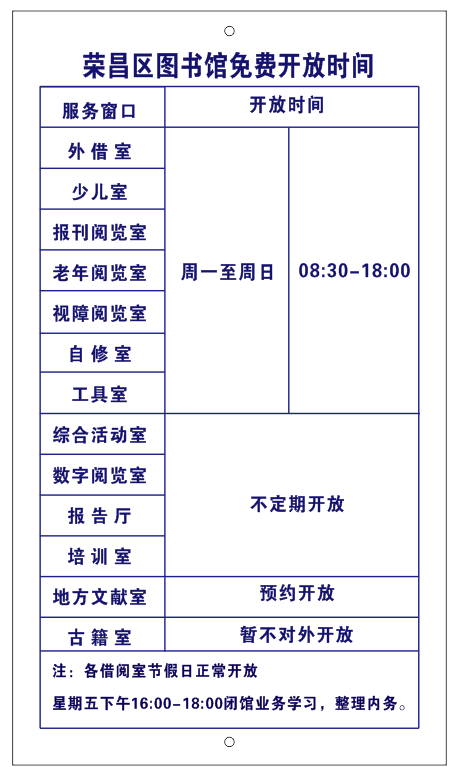 图书馆免费对外开放时间_荣昌区图书馆